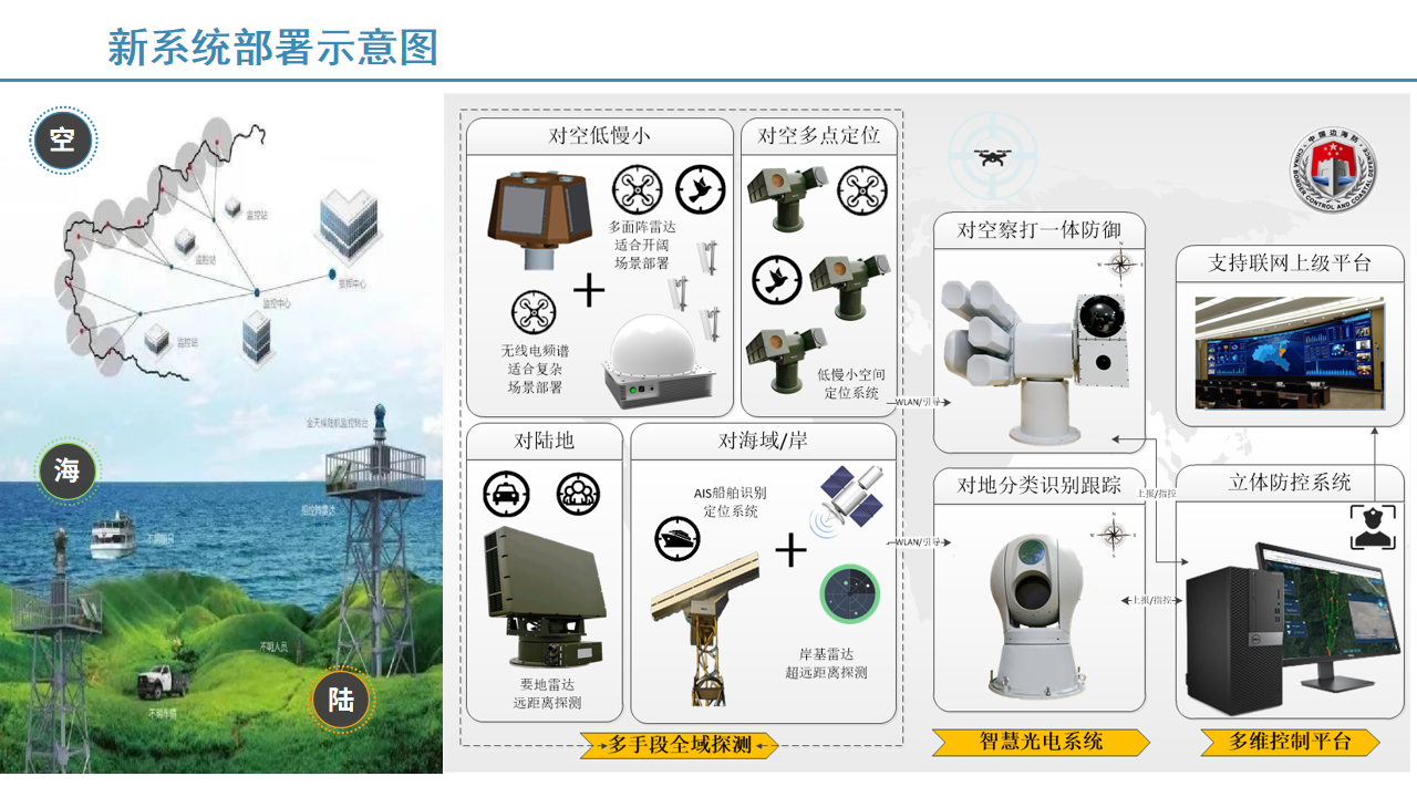 邊海防察識打一體化智能(néng)光電立體防控系統是基于雷達/頻譜、光電智能(néng)聯動技術、海(船)、陸(車、人)、空(民航客機、無人機、低小慢飛行物)信息管理技術、AI邊緣運算智能(néng)識别技術、多光譜融合構建